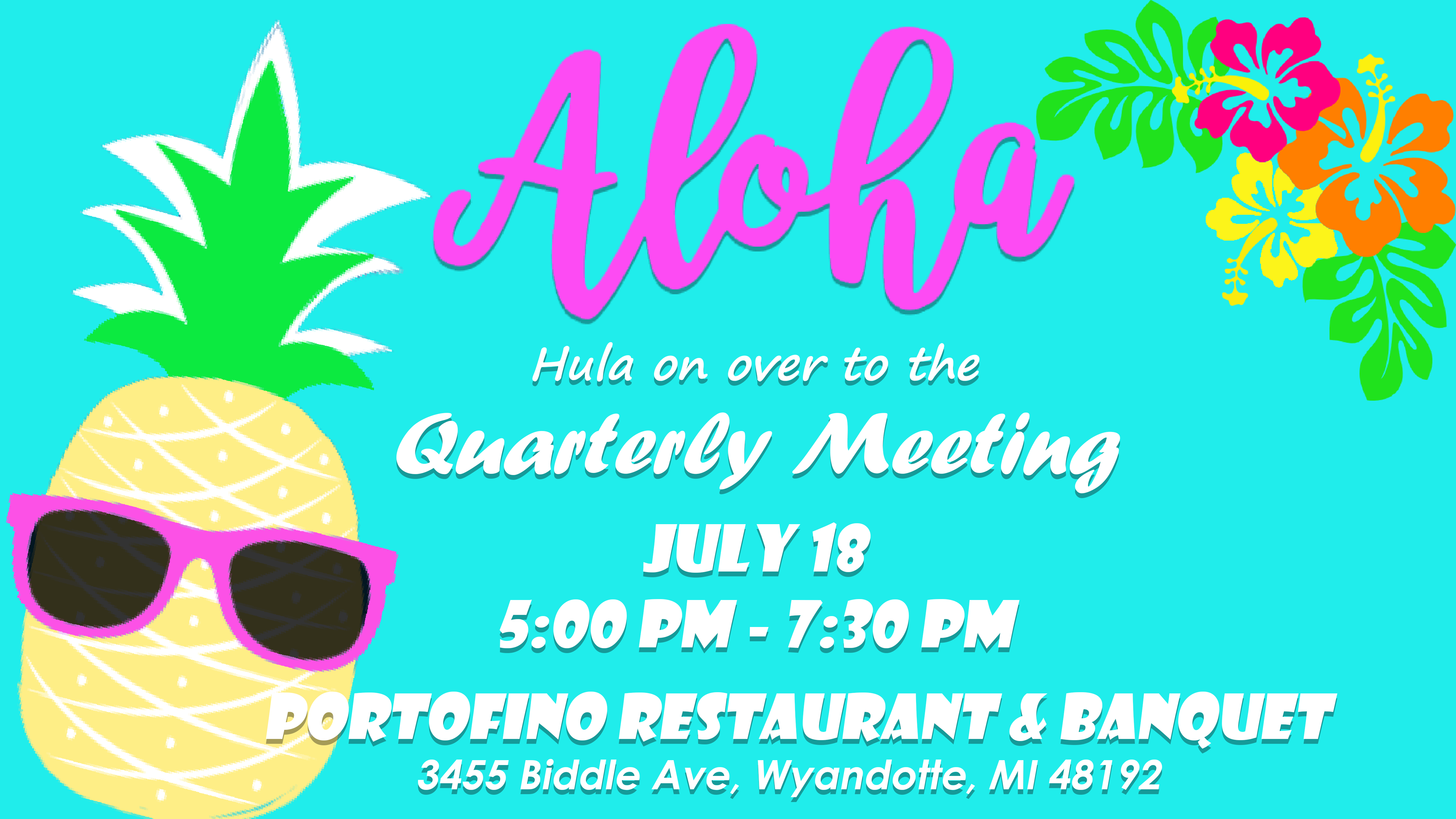 Hula on over to the July Quarterly Meeting at Portofino on Thursday, July 18th from 5:00 PM to 7:30 PM!